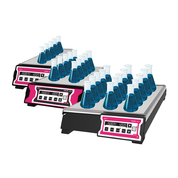 - Máy khuấy từ gia nhiệt 10 vị trí AHN myLab SM-10 kiểm soát vi xử lý, hiển thị nhiệt độ và tốc độ điện tử hiện số, phù hợp dùng trong ngành dược phẩm, hóa chất,…