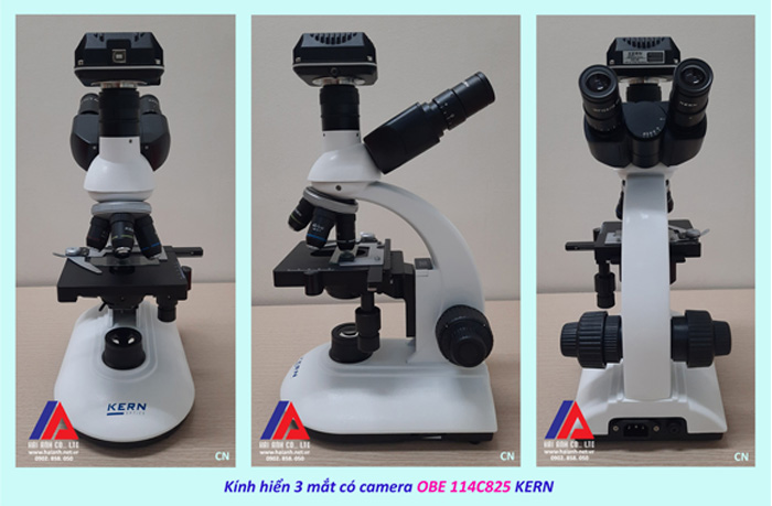 - Kính hiển vi 3 mắt có camera KERN OBE 114C825 có thiết kế hiện đại, nhỏ gọn.