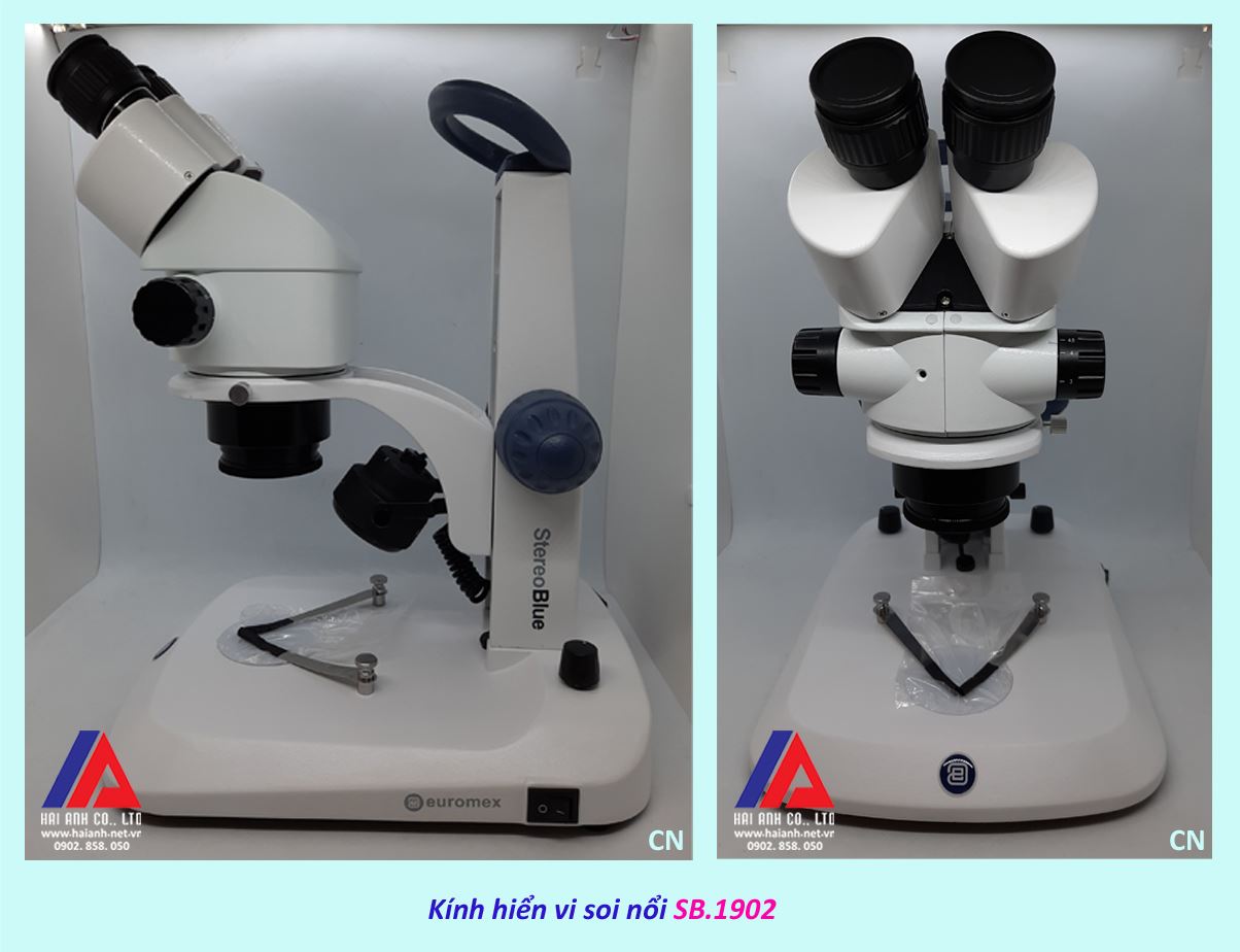 - Kính hiển vi soi nổi 2 mắt EUROMEX SB.1902 thuộc dòng kính StereoBlue cao cấp, thiết kế hiện đại.