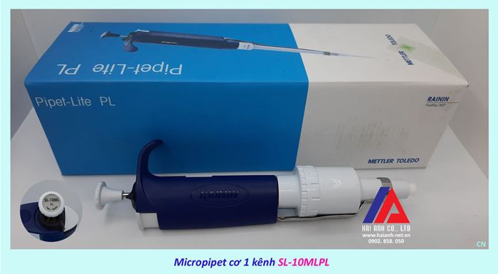- Micropipet cơ 1 kênh Mettler Toledo RAININ SL-10MLPL là loại pipet đơn kênh có thể thay đổi thể tích hút, được sản xuất phù hợp dùng trong IVD với tiêu chuẩn chất lượng ISO 9001, ISO 8655,…