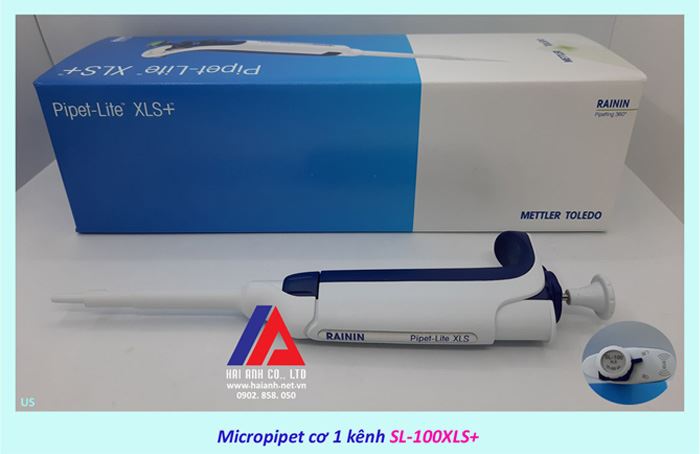 - Micropipet cơ 1 kênh Mettler Toledo RAININ SL-100XLS+ là loại pipet đơn kênh có thể thay đổi thể tích hút, được sản xuất phù hợp dùng trong IVD với tiêu chuẩn chất lượng ISO 9001, ISO 8655,…