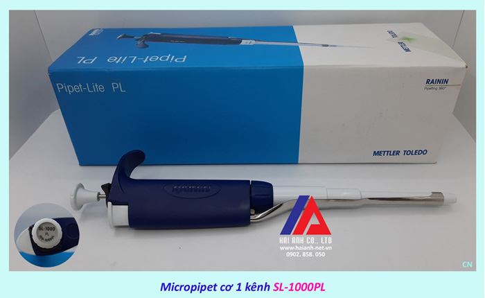- Micropipet cơ 1 kênh Mettler Toledo RAININ SL-1000PL là loại pipet đơn kênh có thể thay đổi thể tích hút, được sản xuất phù hợp dùng trong IVD với tiêu chuẩn chất lượng ISO 9001, ISO 8655,…