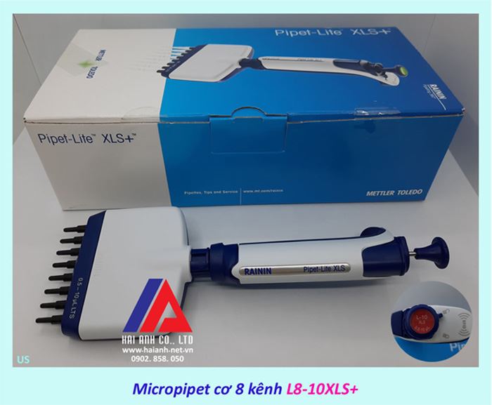 - Micropipet cơ 8 kênh Mettler Toledo RAININ L8-10XLS+ là loại pipet đa kênh có thể thay đổi thể tích hút, được sản xuất phù hợp dùng trong IVD với tiêu chuẩn chất lượng ISO 9001, ISO 8655,…