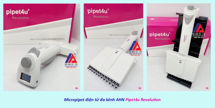 - Micropipet điện tử 8 kênh AHN Pipet4u Revolution là loại pipet đa kênh có thể thay đổi thể tích hút, được sản xuất phù hợp dùng trong IVD với tiêu chuẩn chất lượng ISO 9001, ISO 8655, CE,…